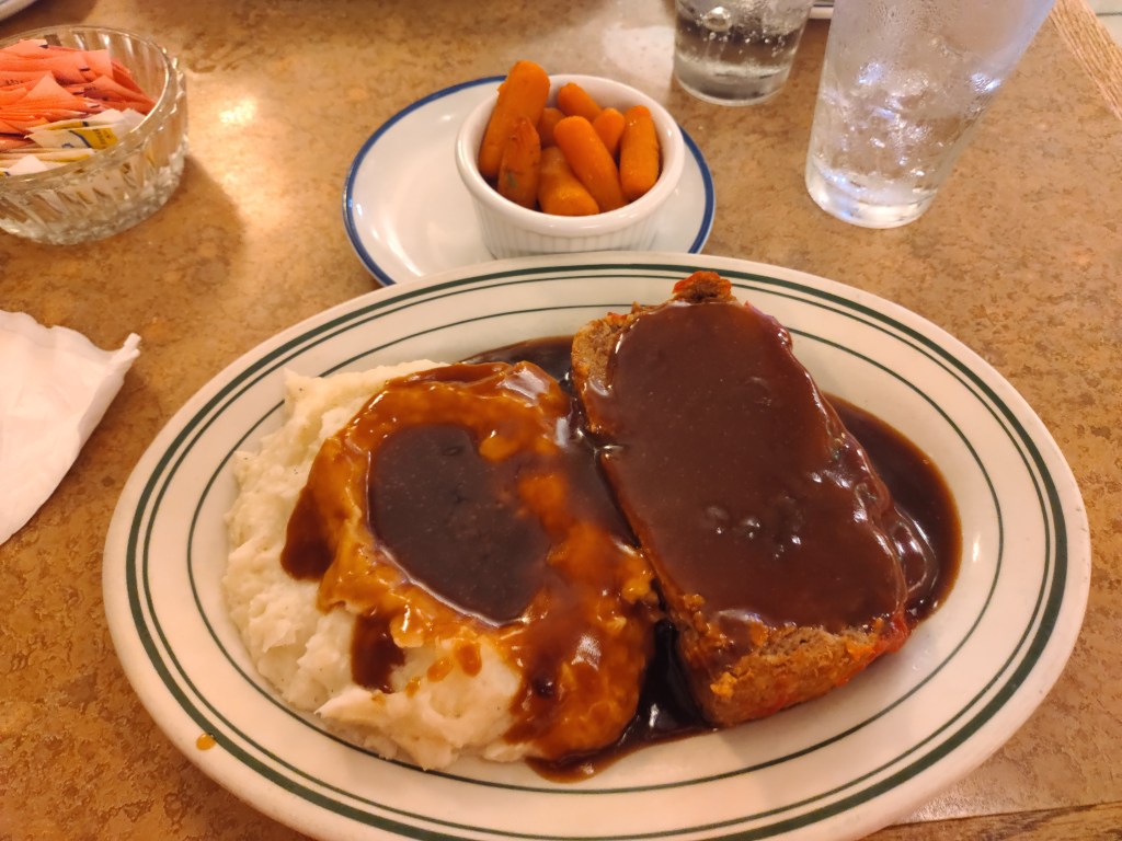 The Maryland Crab Soup is a must-try, packed with succulent crabmeat and the perfect blend of spices. For the main course, the meatloaf served with carrots and creamy mashed potatoes drizzled in gravy will make you feel right at home. Each dish bursts with comfort and flavor, making it a highlight of your visit.